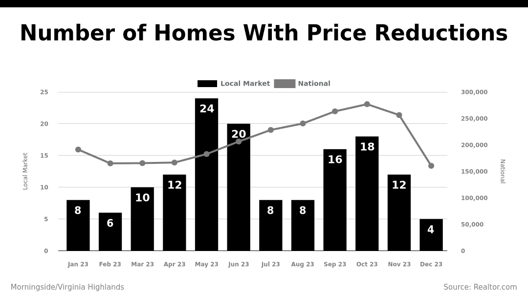 Number of Homes for Sale in Morningside/Virginia Highlands That Had Price Reductions